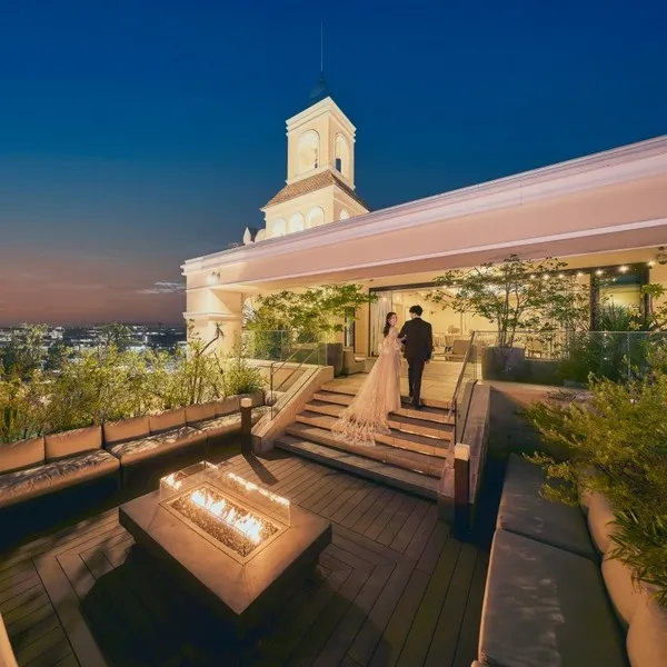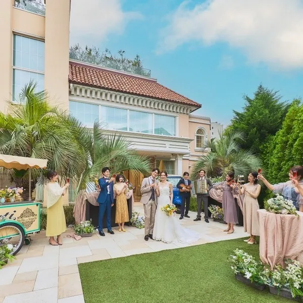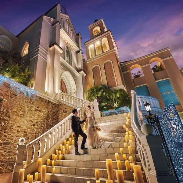 【MAX150万円優待】サンセットウエディングは超オシャレ!緑に包まれるガーデン・会場見学やシェフ厳選の美食体験と、大階段・フォトスポット・絵本マッピングなどノウハウリアル体感